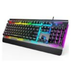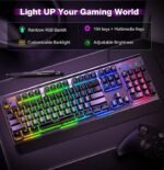 - 【25 Anti-Ghost Keys & 12 Multimedia Keys】Enjoy swift and precise responses during games with the RGB gaming keyboard’s anti-ghost keys, allowing 25 keys to function simultaneously. Control play, pause, and skip functions directly with the 12 multimedia keys for a seamless gaming experience. (Please note: Multimedia keys are not compatible with Mac)