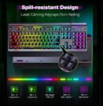 - 【IP32 Spill Resistance】Our quiet gaming keyboard is IP32 spill-resistant, featuring 4 drainage holes in the wrist rest to prevent accidents and keep your game uninterrupted. Cleaning is made easy with the removable key cover.
